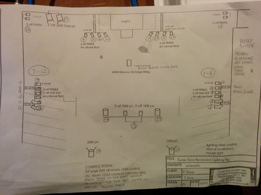 | chamsys patchContains patched heads and groups for Turner Sims lights (universe 2) and house lights (universe 3). | James VII | 22/11/2014 @ 23:43 | |